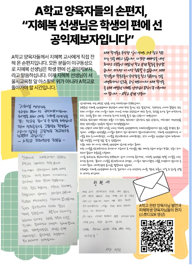 μ§ κ΅μ¬μ μ°λν΄ μ¨ μμ‘μ, κ΅μ‘λ Έλμ λ± μλ―Όλ€μ΄ μ¨λͺΈμΌλ‘ μΌμΌν¨ κ· μ΄μ΄ νκ΅λ κ΅μ‘νλ 곡κ°μ΄λ©°, κ΅μ¬λ νμ κ³μΌλ‘ λμκ°μΌ νλ€λ λΉμλ₯Ό νμΈνλ μλμ΄κΈ°λ₯Ό λ°λλ€. νΌν΄λ₯Ό μλ¦° νμλ€μ΄ "μ°λ¦¬κ° μ³μλ€"κ³ μ‘°κΈμ΄λλ§ μμλ°κΈ°λ₯Ό λ°λλ€. μ€λ 29μΌ μ§ κ΅μ¬μ λΆλΉμ 보 μ‘°μΉλ₯Ό μ·¨μνλΌλ νκ²°μ κ΅μ‘ ν볡μ 첫 λ¨μΆλ₯Ό κΏ°λ μΌμ΄ λ κ²μ΄λ€.